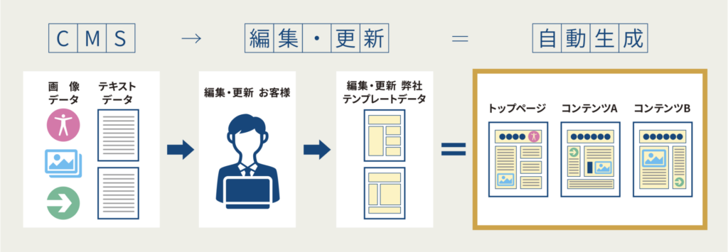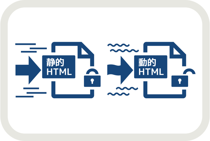 静的HTMLとして出力することで、表示速度が高速かつ安定し、アクセス集中時でも負荷が少なく安心です。動的処理が不要なため、セキュリティ面でもリスクを抑えられます。大規模サイトや公共系サイトにも最適です。