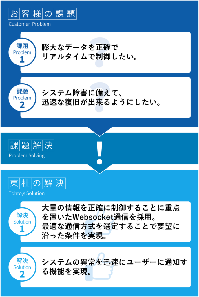 要望に合わせて最適な通信方式を選定することで、正確な情報の送受信をリアルタイムで実現しました。